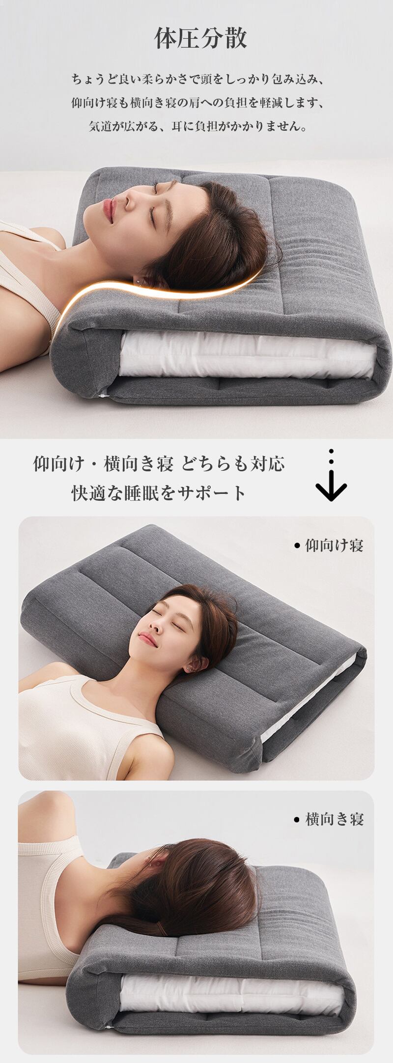 適度な支持力を持つタオルの層により、優しく支えられているような寝心地です。<br> <br>