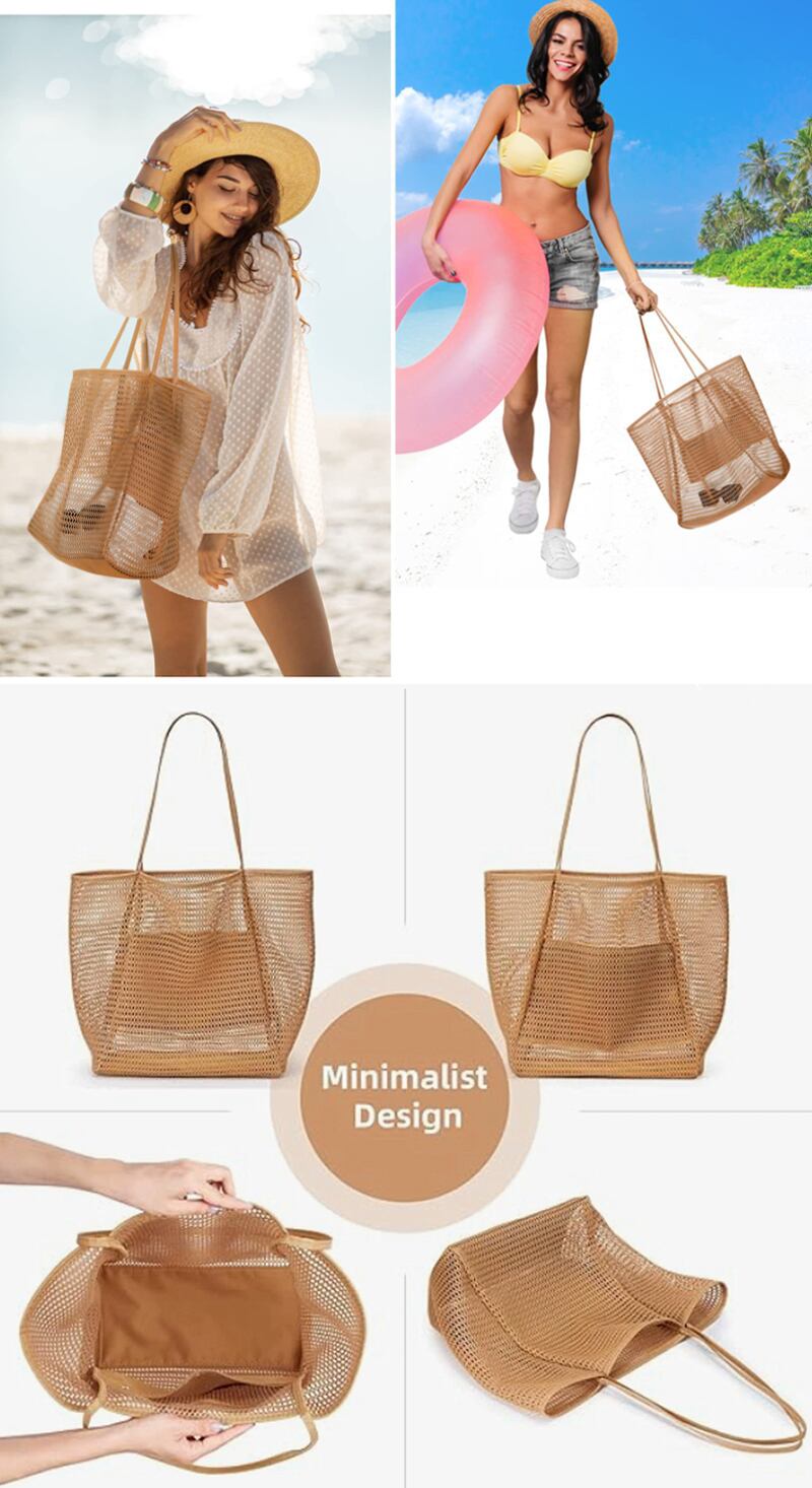 ビーチバッグ 大容量 エコバッグ メッシュバッグ プール 大容量 速乾 軽量 折り畳み可能 ショッピングバッグ トートバッグ 砂場 水泳 海水浴 バッグ ビーチバッグ プールバッグ ショルダーバッグ ピクニック 温泉 旅行用 ファッション シンプル