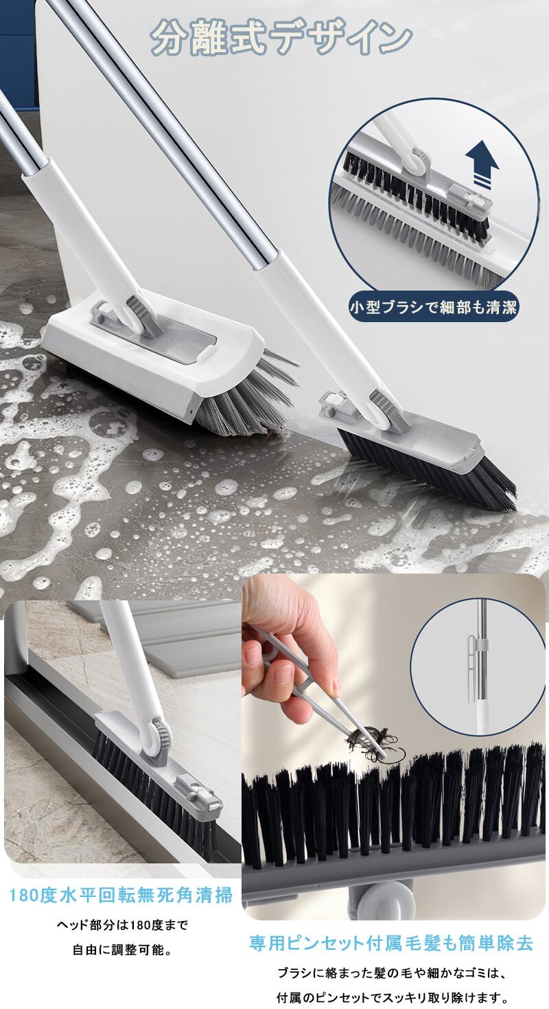 デッキブラシ ベランダ 玄関 タイル 掃除用ブラシ ベランダ 掃除 3in1多機能デッキブラシ ベランダ 屋外 ベランダ掃除 玄関 風呂 お風呂床ブラシ 玄関ブラシ 伸縮 隅まで届く設計 水切りワイパー付き 業務用 家庭用 2WAY